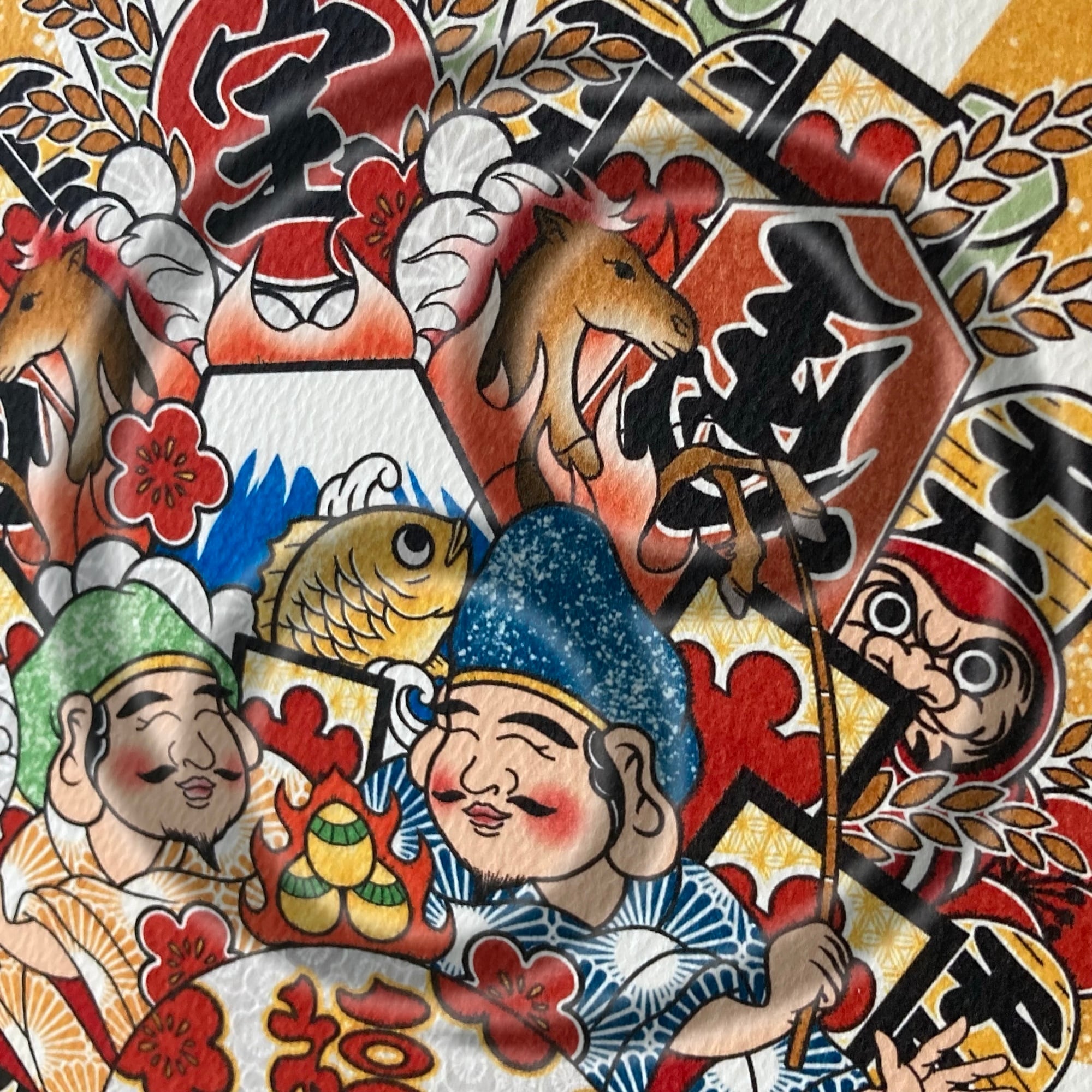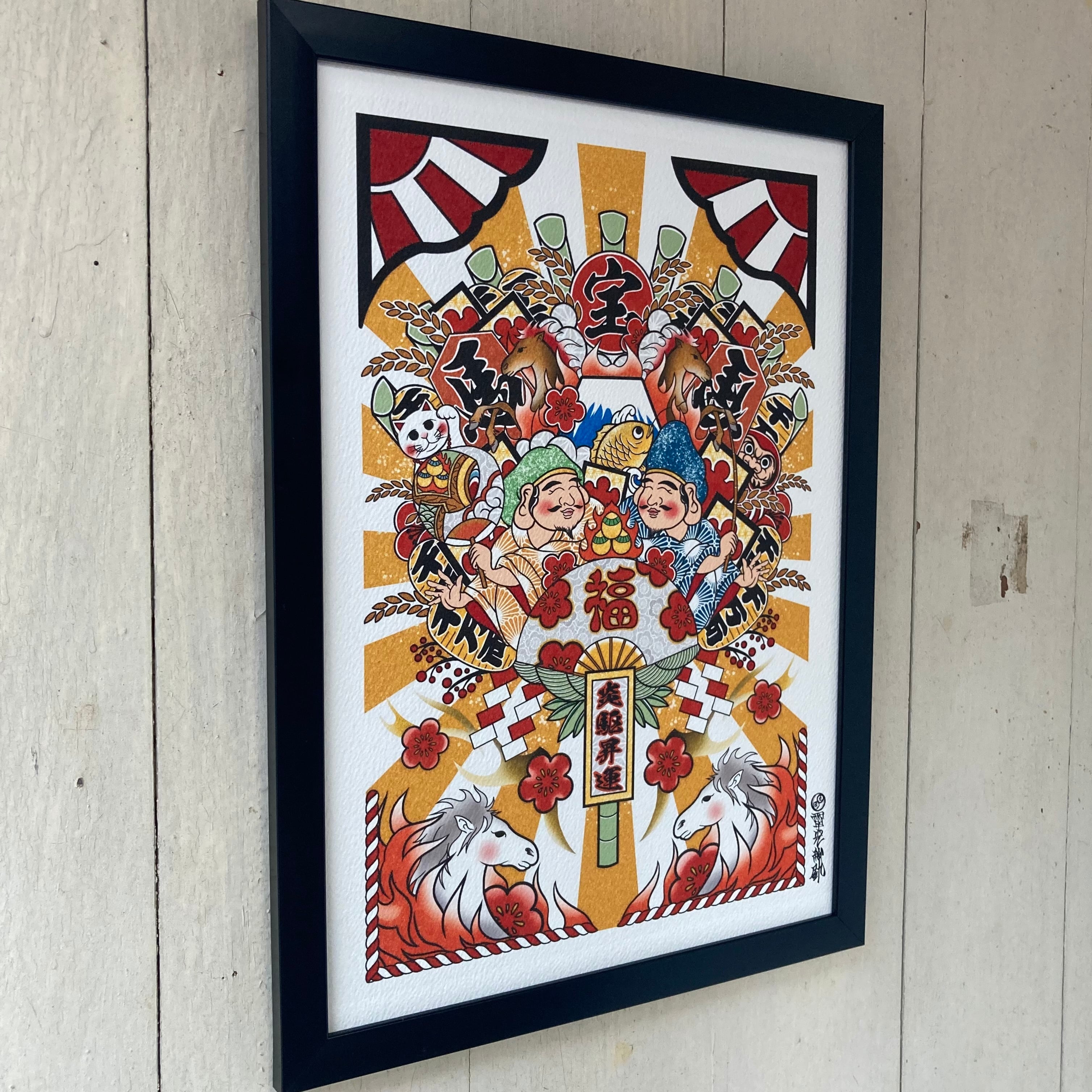 左右には恵比寿と大黒天が描かれ、