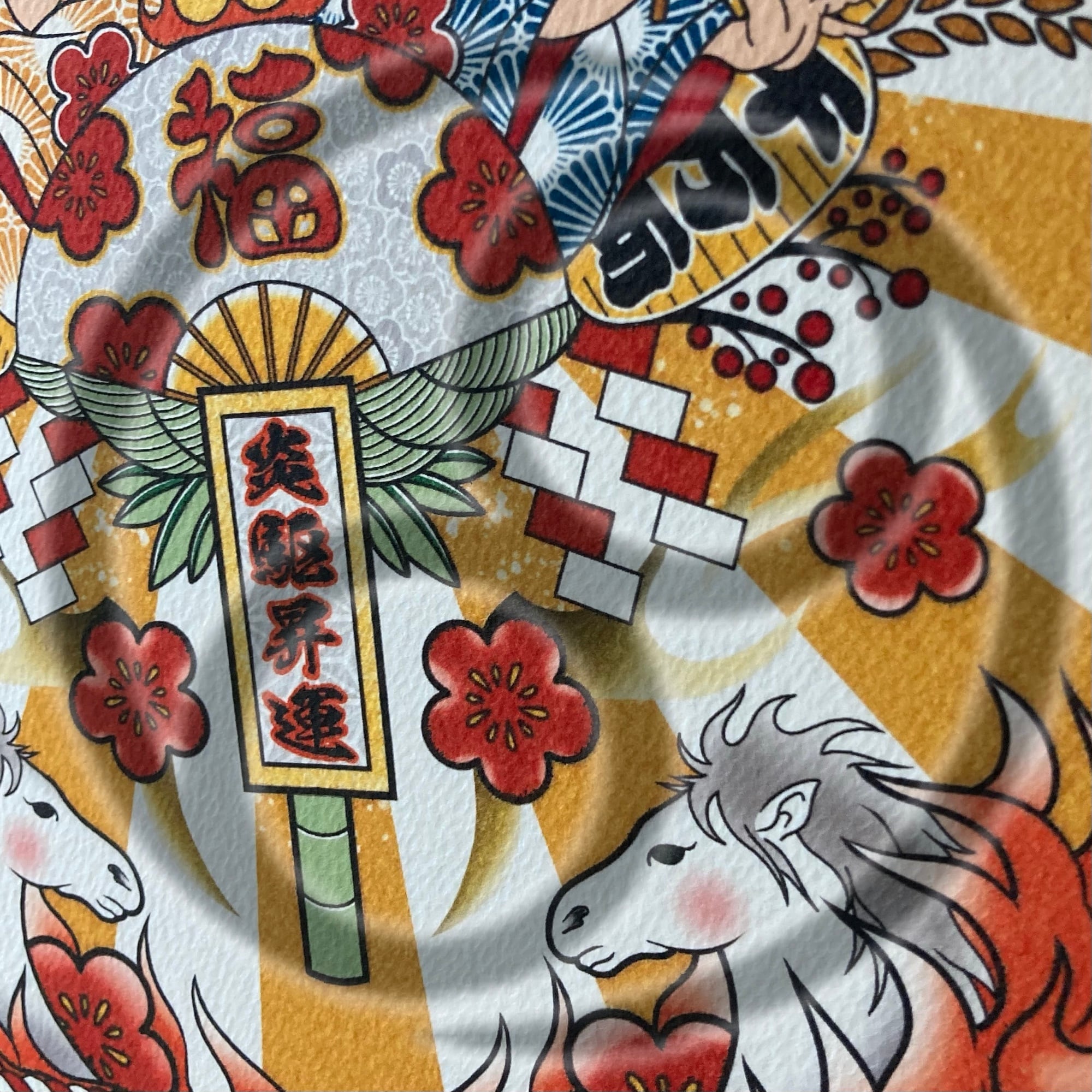 炎をまとい天へと駆け上がる炎馬は、情熱・行動力・飛躍の象徴