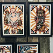 尾九 開運イラスト 七福神 7枚セット A4サイズ フレーム付き