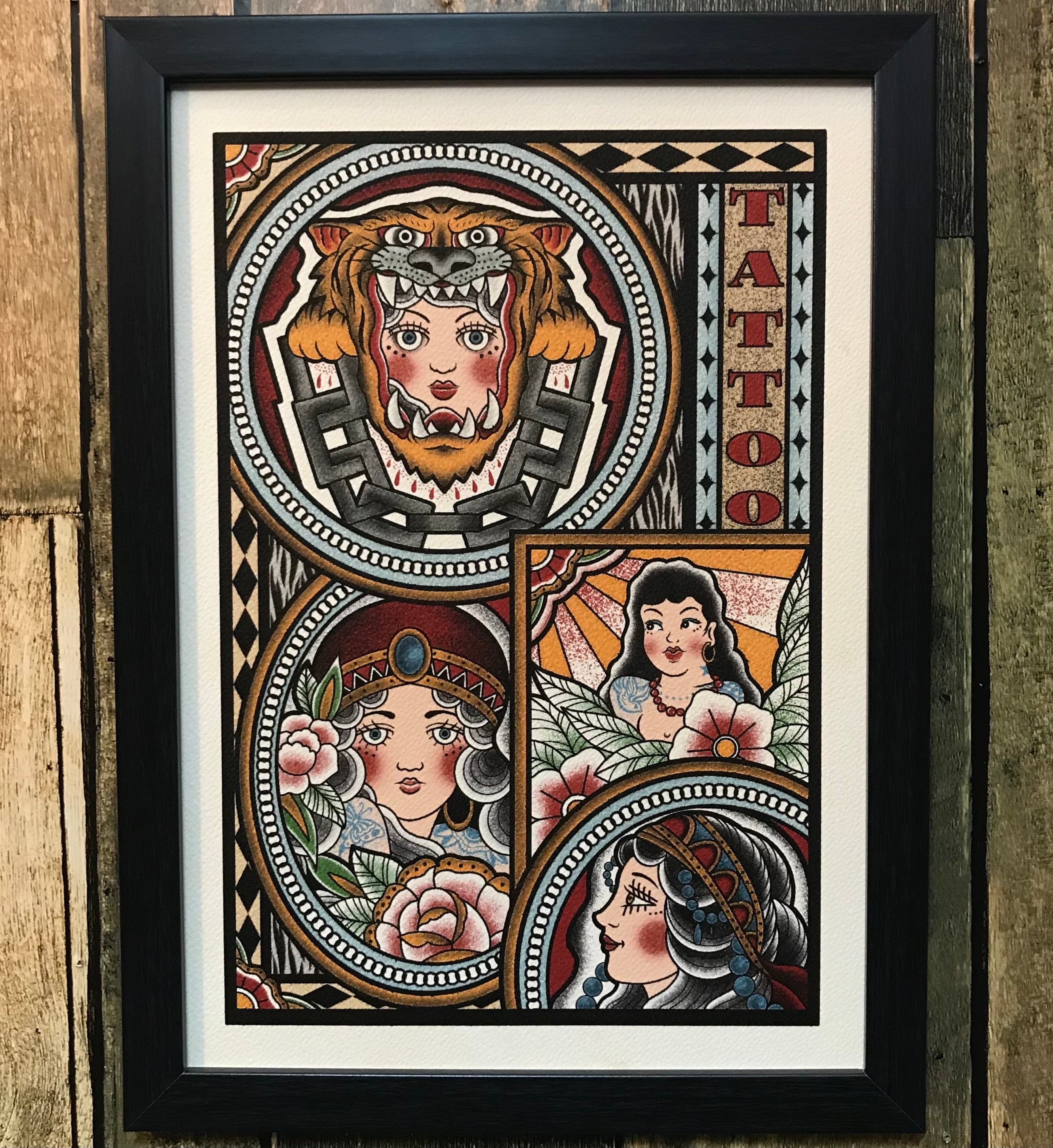 尾九 タトゥーアート ピンナップガール A4サイズ フレーム付き