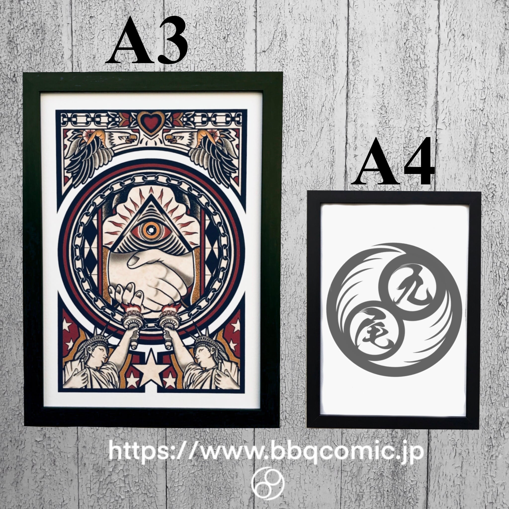 尾九 タトゥーアート プロビデンスの目 A3サイズ フレーム付き