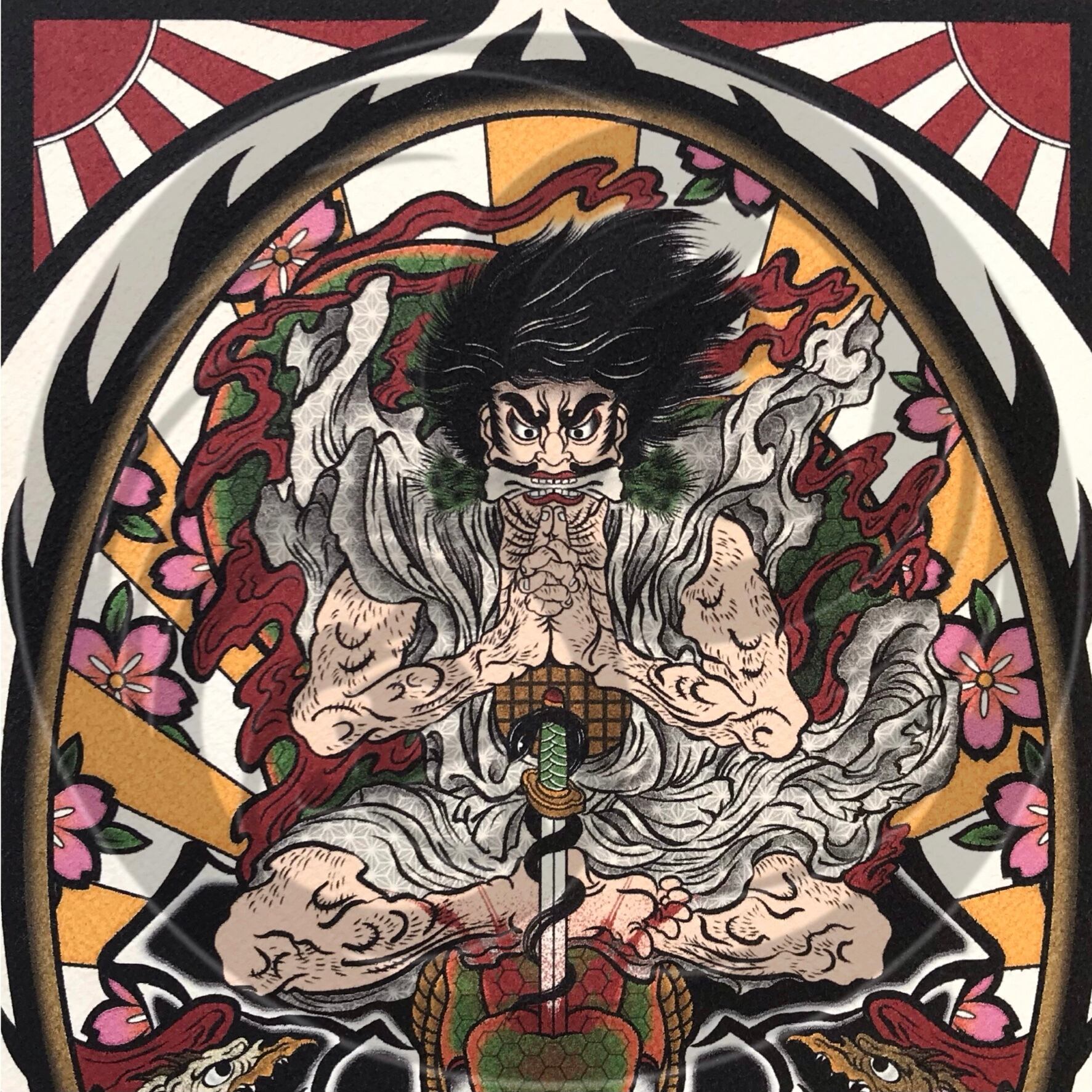 尾九 カスタム 浮世絵 鬼童丸 A3サイズ フレーム付き