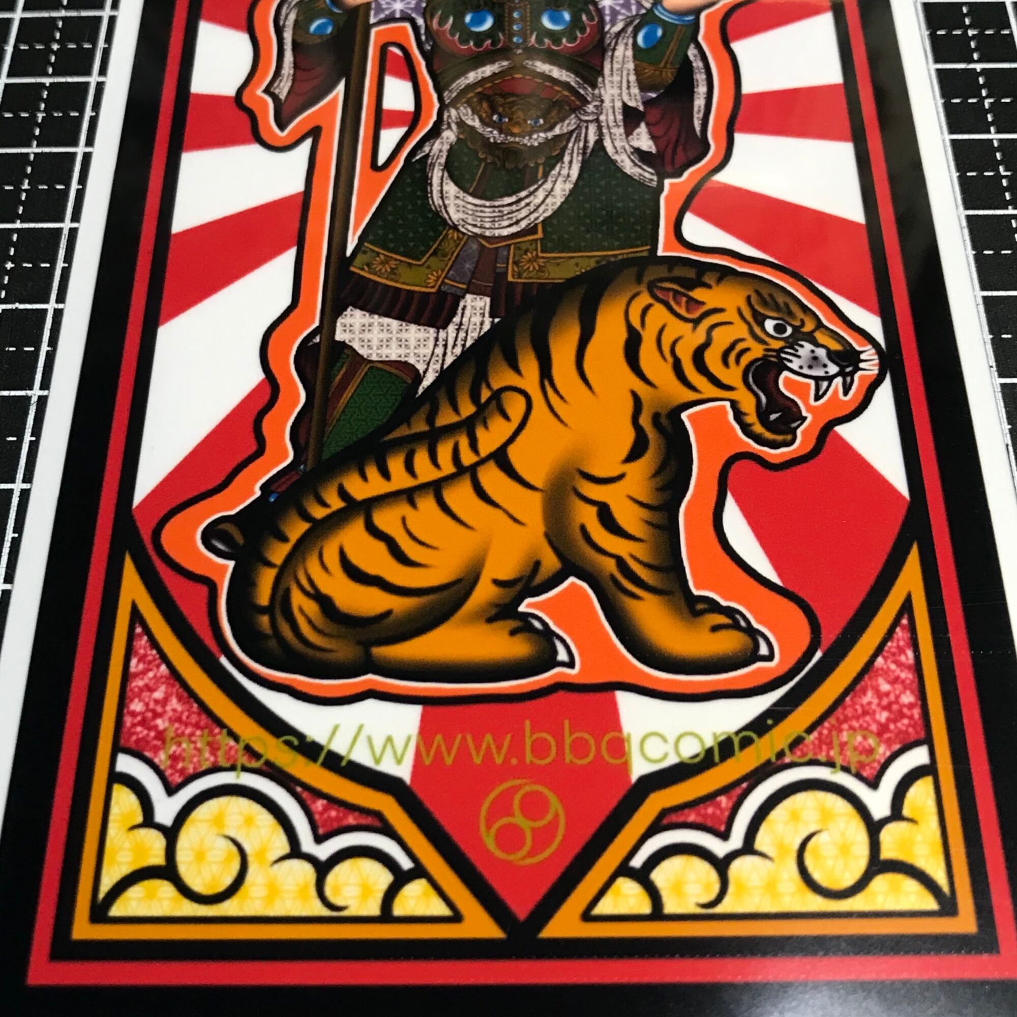 甲冑をまとい、右手に宝棒、左手に宝塔を持つ