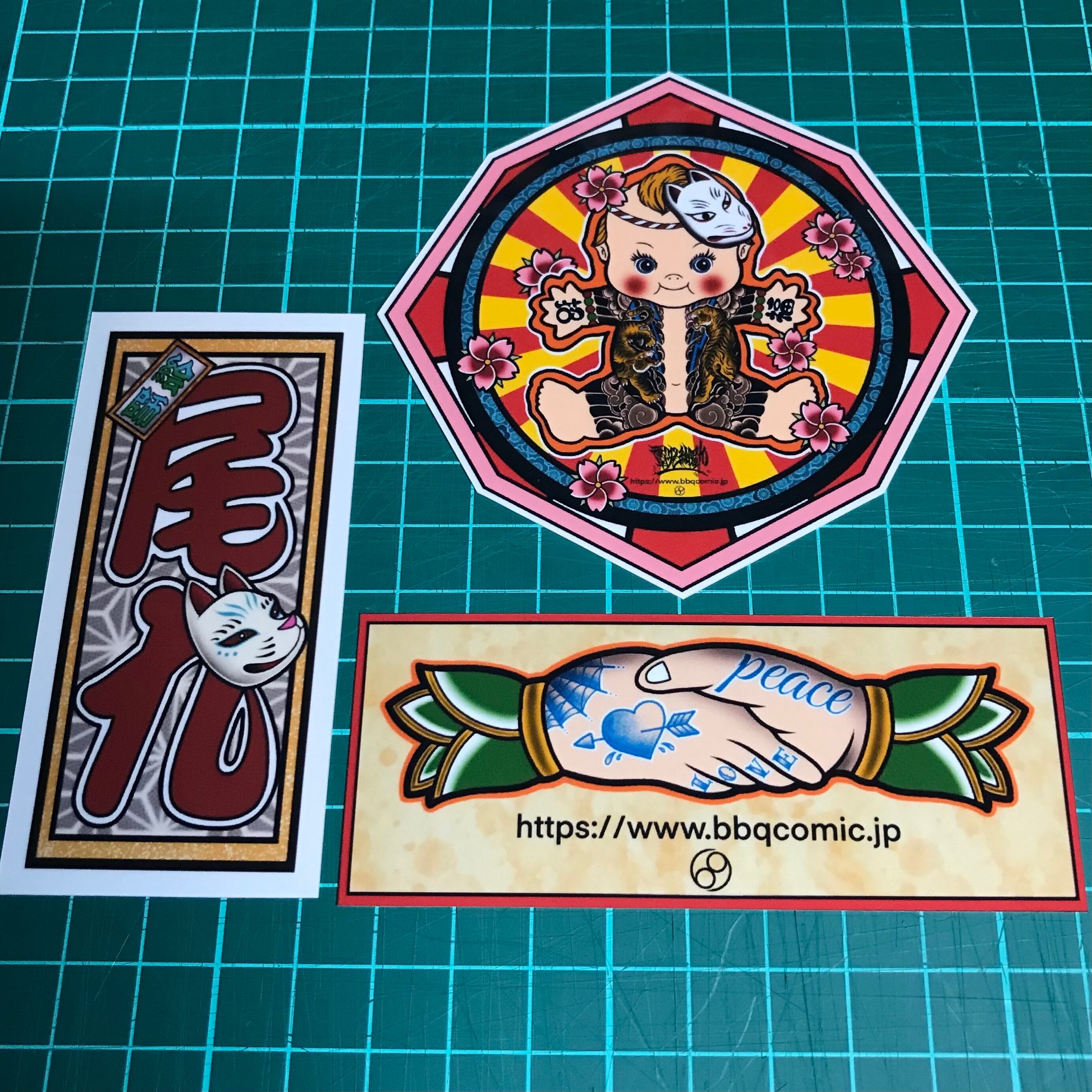 千社札とシェイクハンドステッカー付き